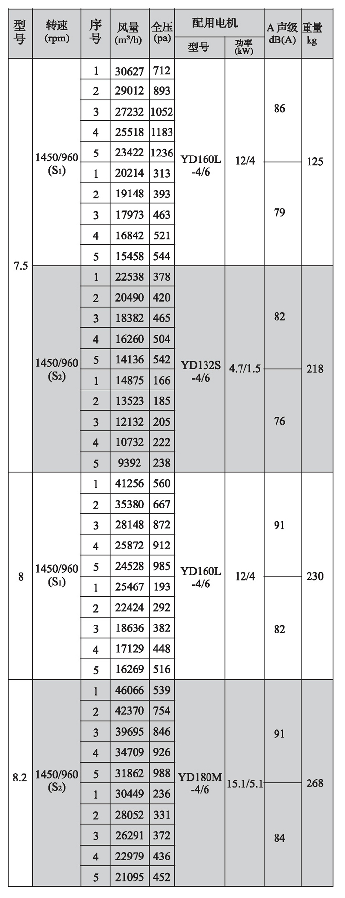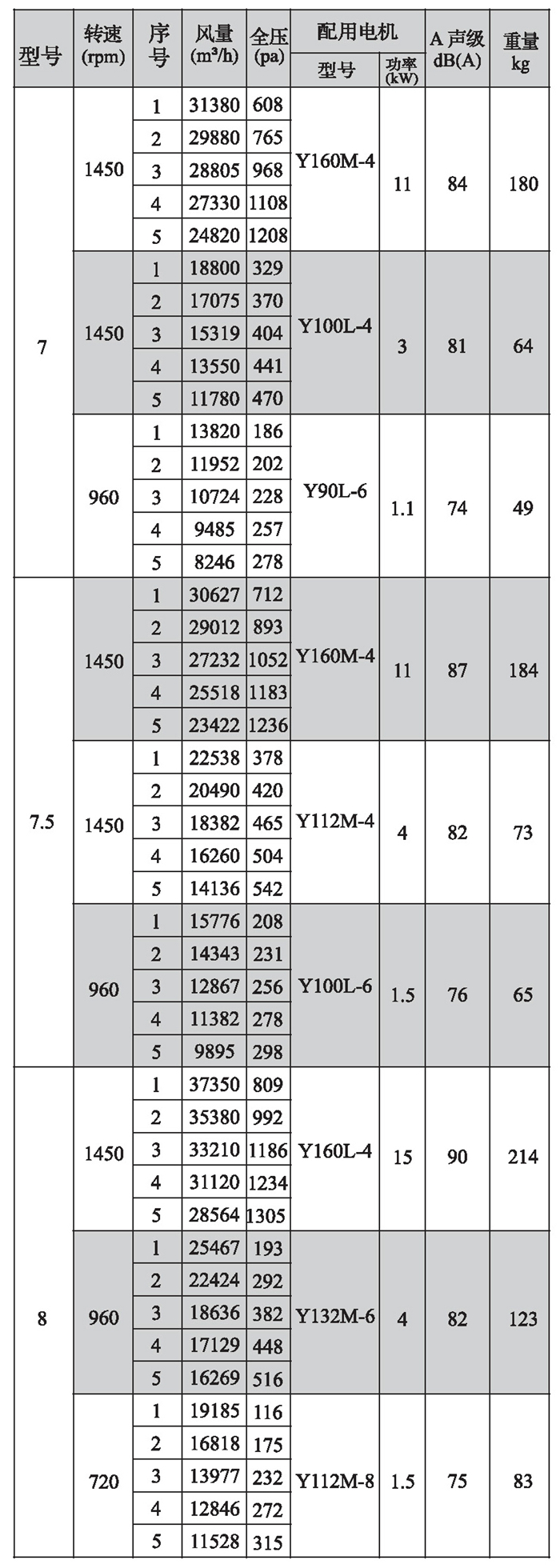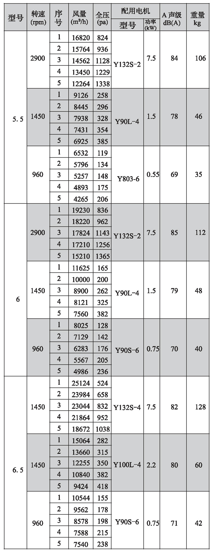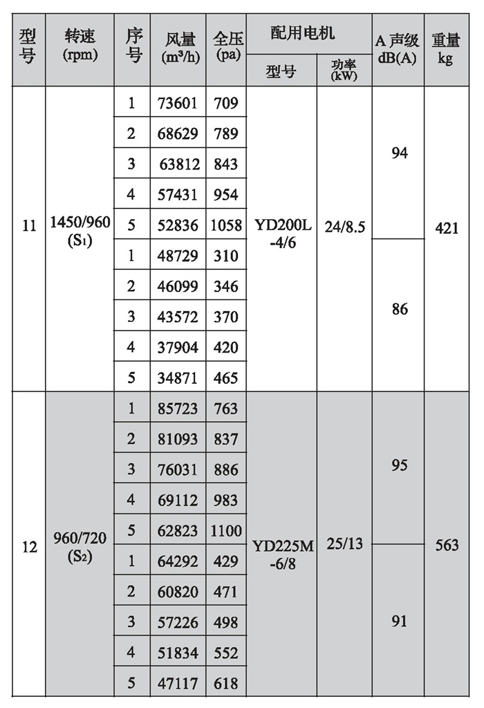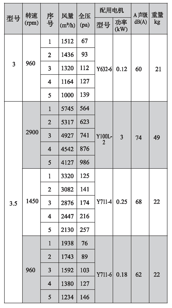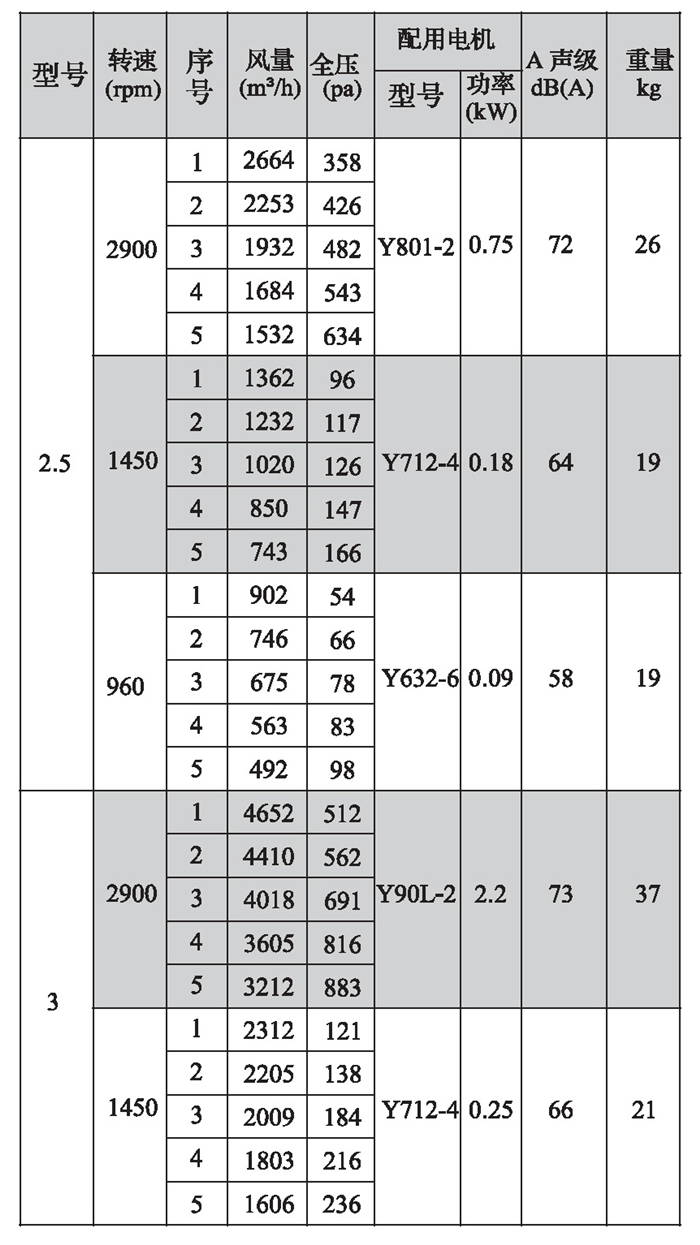 SWF-II系列混流式風機性能參數(1)