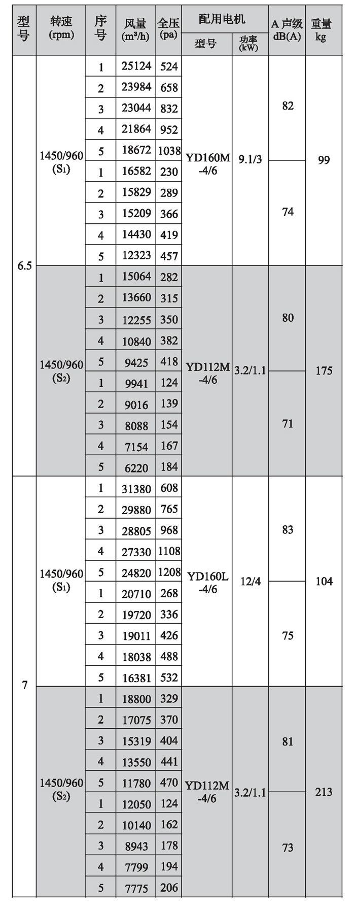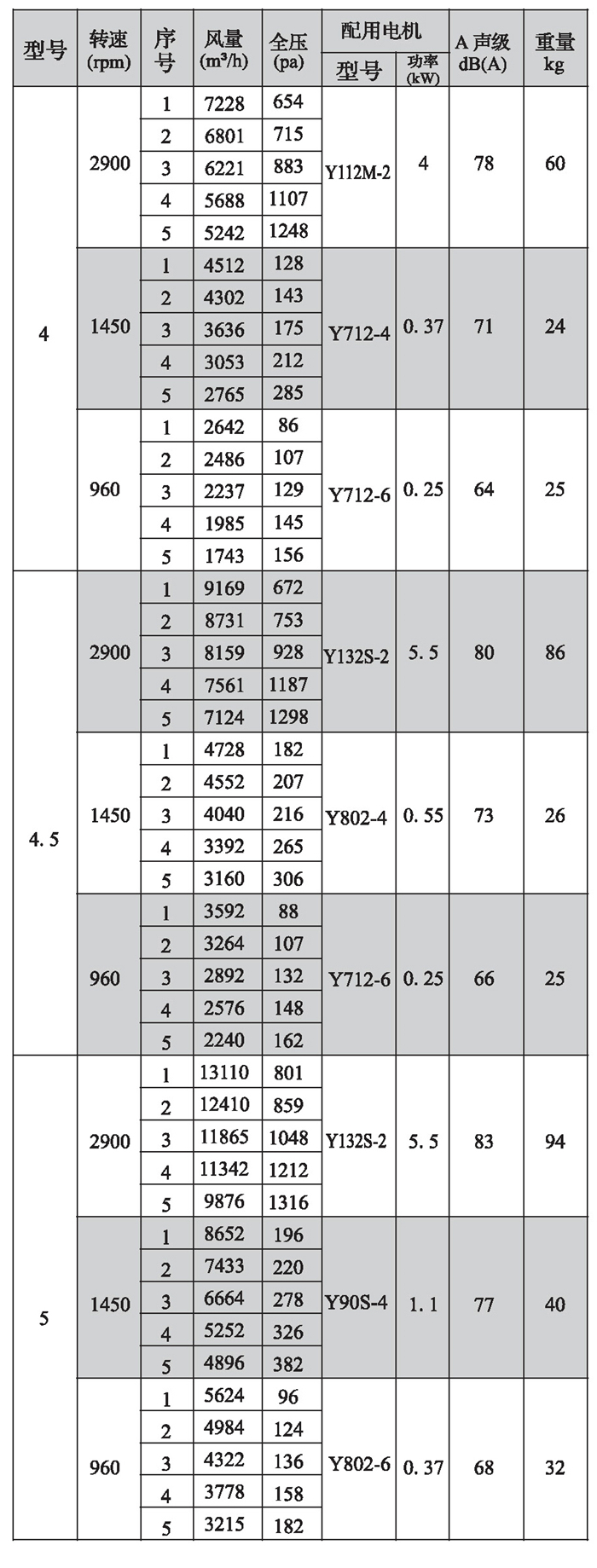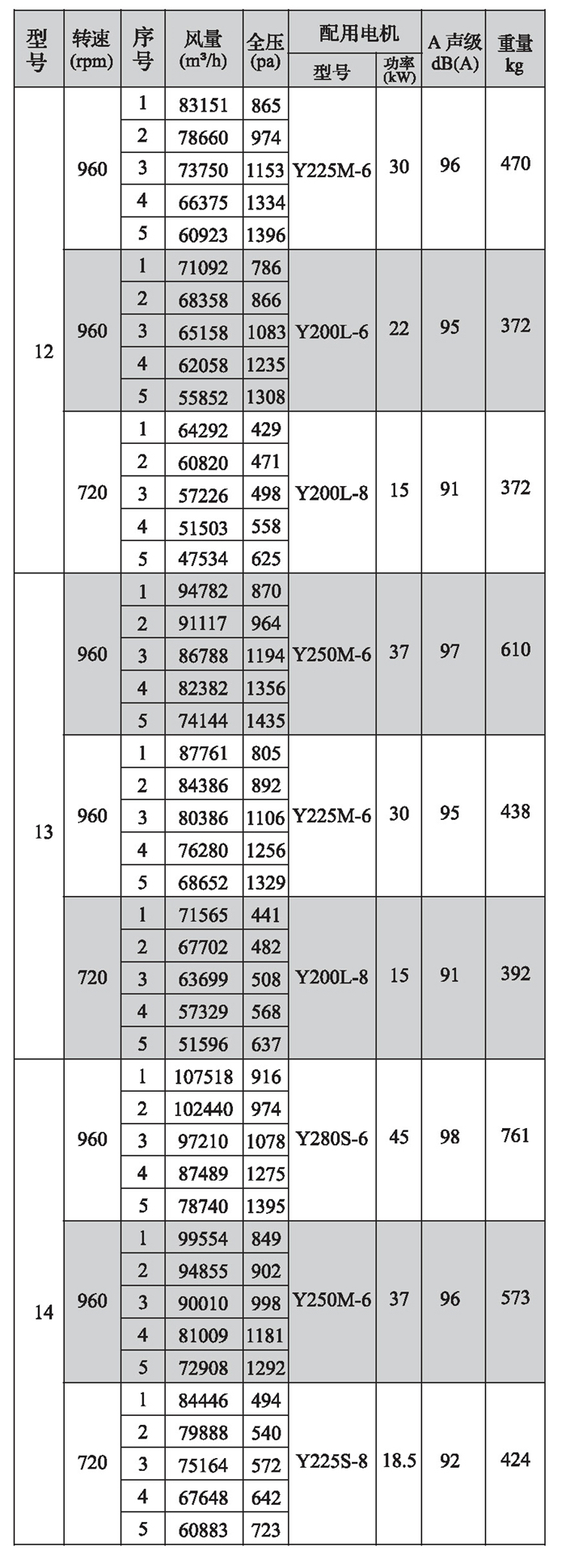 SWF-I系列混流式風機性能參數(4)